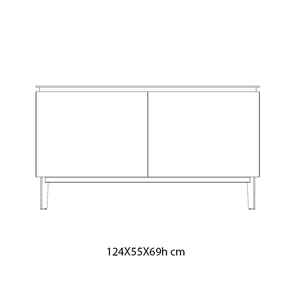 Aparador con estructura en madera lacada y patas de acero. Dimensiones: 124x55x69h cm.