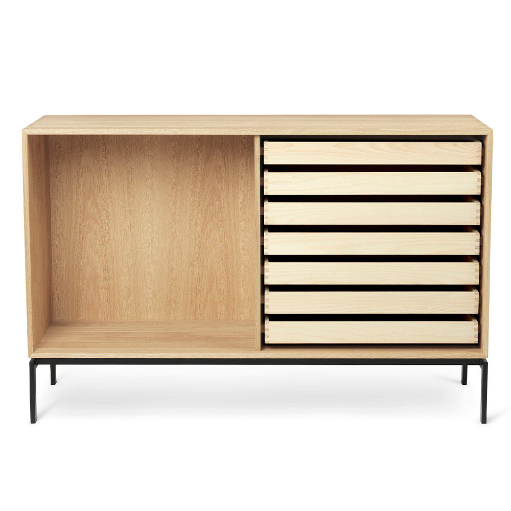 El aparador FK63 con diseño moderno, elegante y atemporal fue diseñada en 1963 por Preben Fabricius y Jorgen Kastholm, es el resultado de un interés compartido en diseños funcionalmente minimalistas que se centran en la proporción, elegancia, y diseño atemporal, junto a los detalles hechos a mano y los materiales naturales.