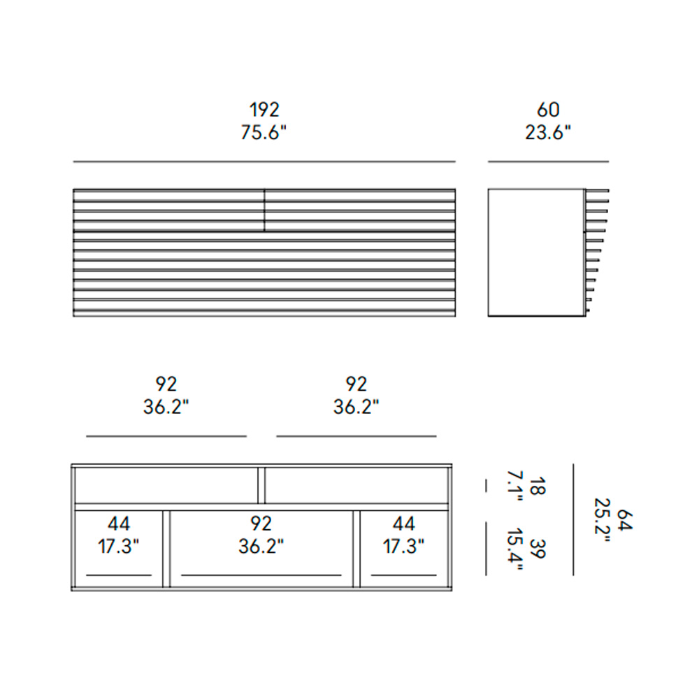 El desarrollo horizontal del frente le da al conjunto un aspecto suave y escultural. Además de la estética, Tide se presenta como una espaciosa y funcional aparador.