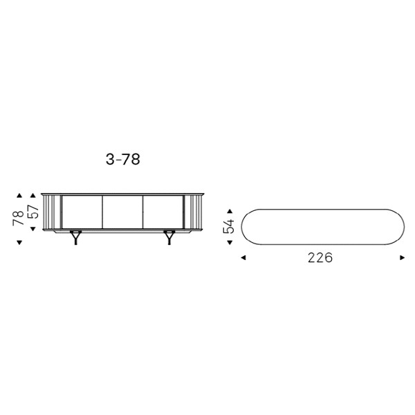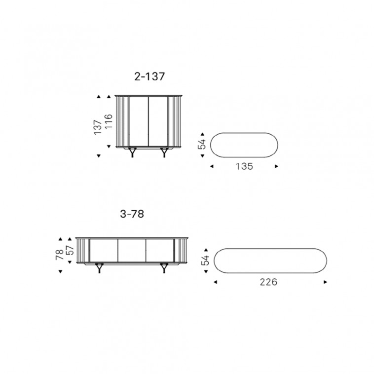 El verdadero detalle que lo distinguen son sus refinadas patas de acero, compuestos por cuatro elementos metálicos en forma de Y con los que el aparador se apoya con gracia en el suelo. Las puertas de madera de nogal o roble están elaboradas con unos listones diagonales que resaltan las vetas naturales del acabado. Este moderno aparador está disponible con 2 o 4 puertas, ideal para integrase con naturalidad a cualquier espacio de la casa.