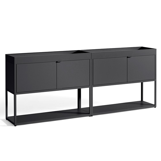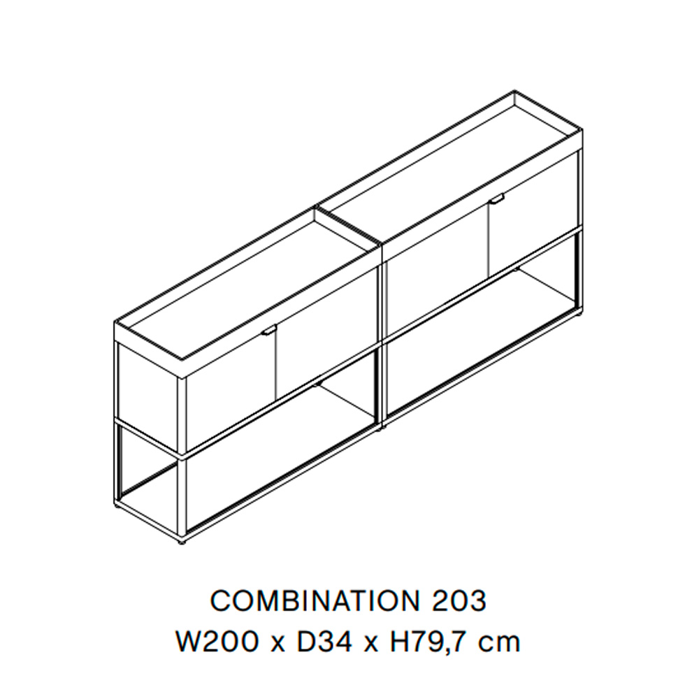 Su construcción simple con rejilla abierta actúa como una estructura flexible y práctica que permite al usuario elegir soluciones de almacenamiento prediseñadas según sus necesidades concretas.