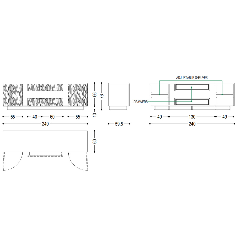 Aparador madera maciza con interior en roble natural. Dimensiones:240x59,5x76h cm.