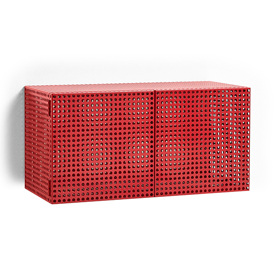 Creada para HAY por Muller Van Severen, la colección de armarios perforados es una serie que se distingue por el uso expresivo del color, la forma y la funcionalidad propios de los diseñadores. La trama de pequeños orificios genera un efecto semitransparente que disimula suavemente el contenido, logrando un equilibrio entre exposición y resguardo.