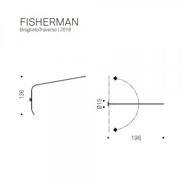 El aplique de pared Fisherman fue diseñado por Brogliato Traverso para Cattelan Italia, su estructura está hecha en acero y se destaca por su forma tubular curvada que simula una caña de pescar. Un pasador circular colgado en la pared permite orientar su dirección. En la parte exterior de la lámpara se soporta el elemento difusor equipado con luz LED. La lámpara Fisherman es un complemento de diseño moderno con un aspecto poco tradicional, con un estilo distintivo y funcional.