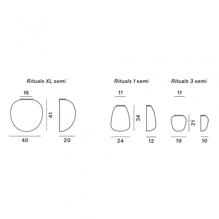 Su diseño habla el lenguaje de la belleza y la poesía. Rituals Semi está hecha a partir de cristal soplado  realzado por unas pequeñas incisiones, como en la técnica de fresado, con un efecto de mano de obra refinada que recuerdan el gesto del pulido, fruto de un acertado trabajo artesanal.