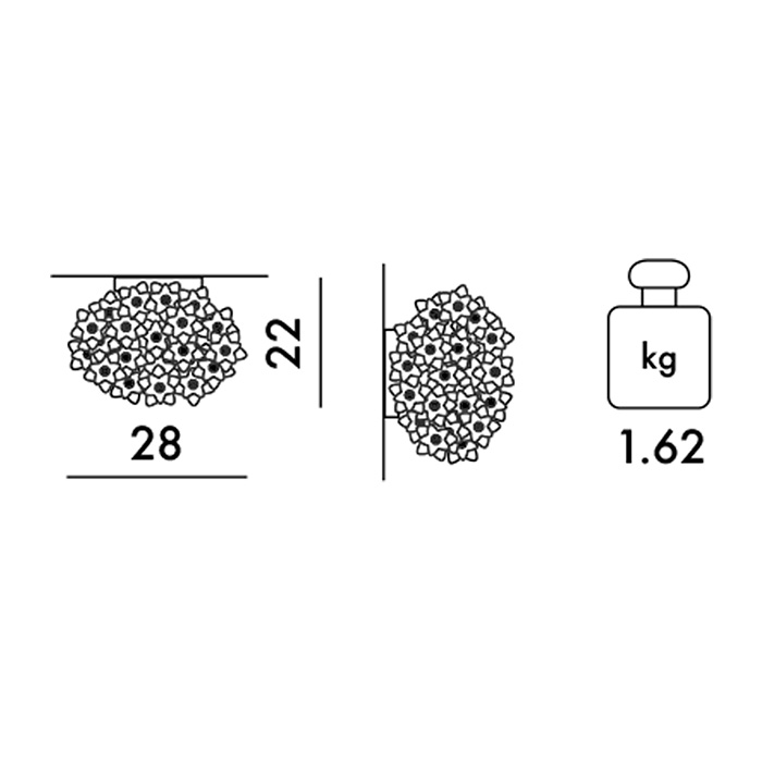 Aplique pared elíptico recubierto de brillantes flores cortadas. Dimensiones: Ø28x22h cm