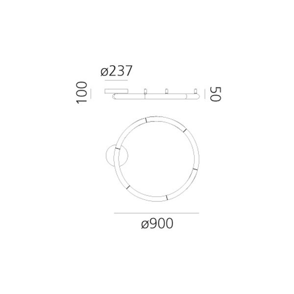- Dimmerable (Push/DALI): aparato regulable gracias al pulsador remoto adaptado para gestionar driver de tipo Push o como alternativa gracias a puntos de control adaptados a gestionar el driver del tipo DALI. En la regulación del aparato el controlador Push excluye el uso del comando DALI y viceversa.