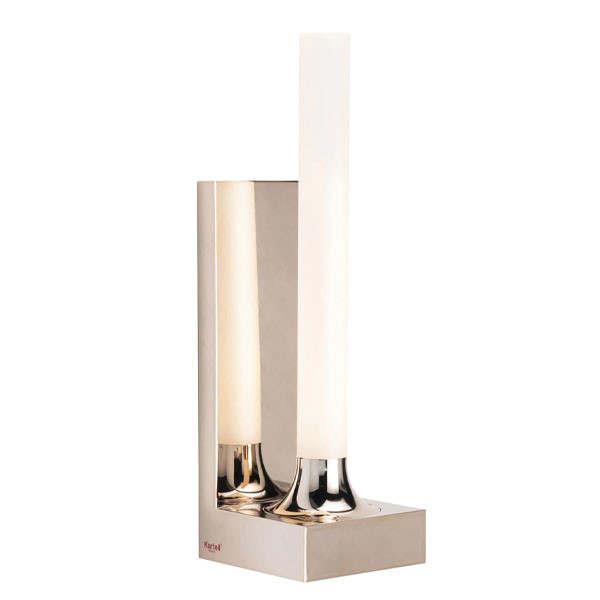 La exploración de Starck continúa con la fuente de luz más romántica: la vela, con sus reflejos cálidos y suaves. GOODNIGHT se inspira en el concepto de la vela y su forma primordial, convirtiéndola en objeto altamente tecnológico. La lámpara hecha de material reciclado se presenta también en versión aplique y de batería, con detalles sorprendentes en términos de duración y tres distintas intensidades luminosas, con prestaciones muy elevadas.