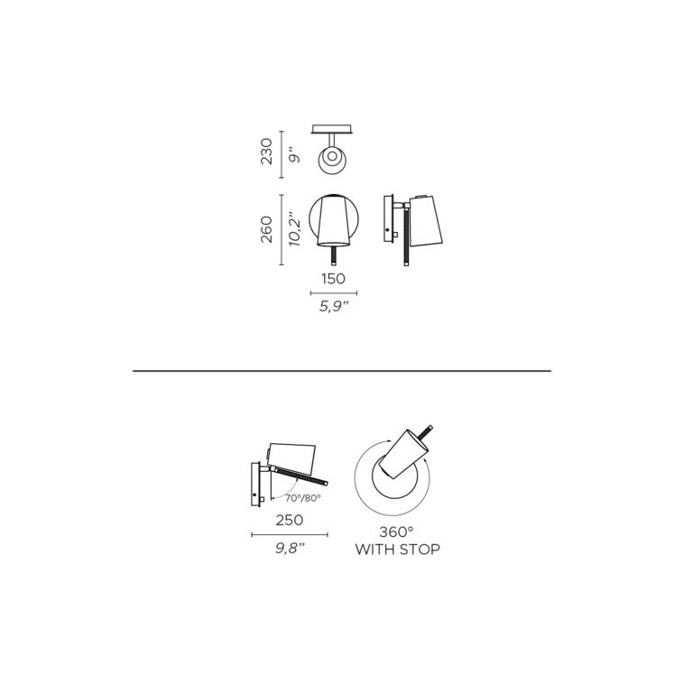 UP es una colección de lámparas que combinan el metal en acabado bronce-níquel cepillado con la seda tejida en color naranja oscuro que reviste las columnas. El interior de la cabeza giratoria en forma de cono truncado está recubierto con una película de color crema para darle un toque de estilo. Un interruptor giratorio lo hace particularmente versátil.