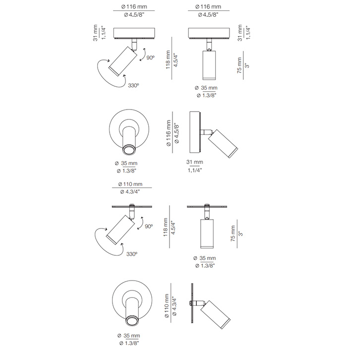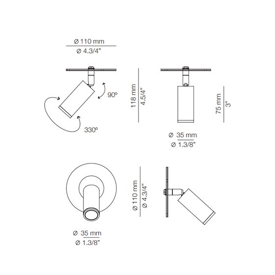 Lámpara de aplique o techo Volta con su foco individual permite una iluminación puntual con un diseño elegante.