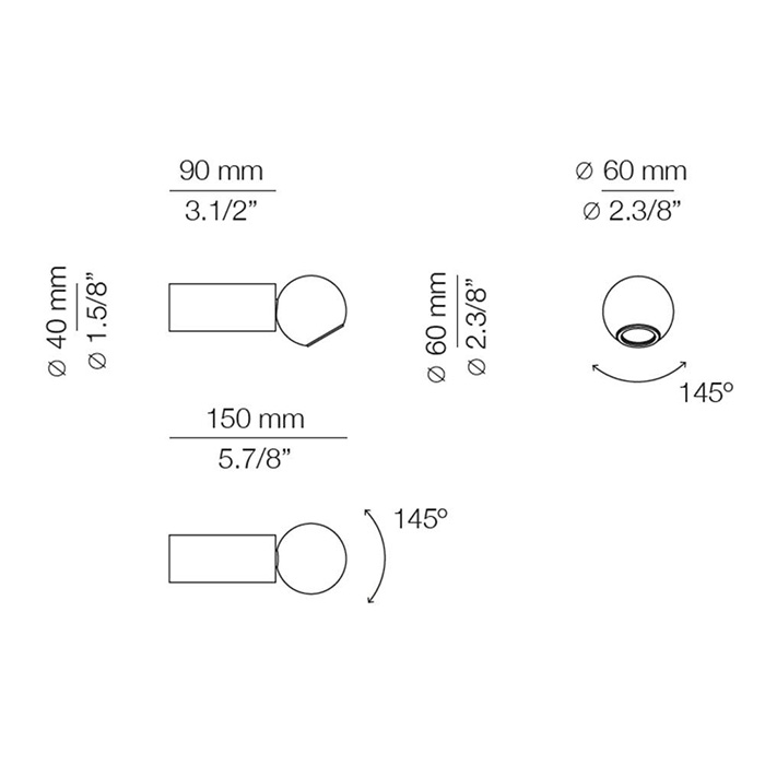 Aplique metálico de pared con luz directa. Dimensiones: Ø6x9x4h cm.