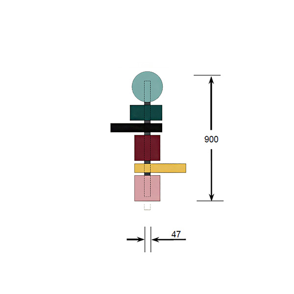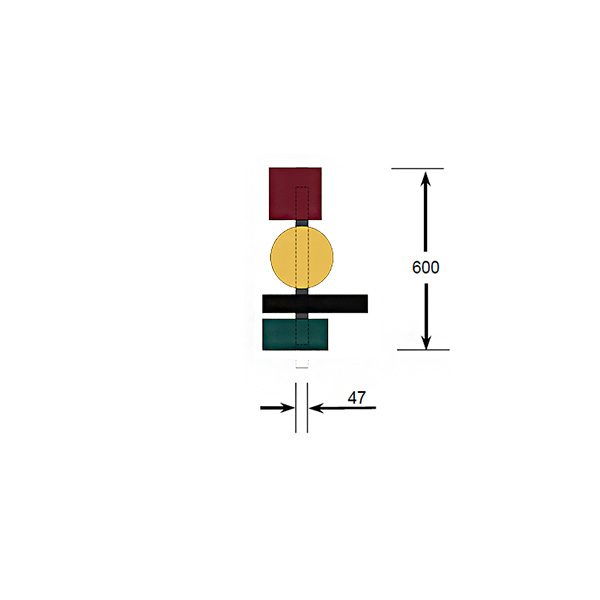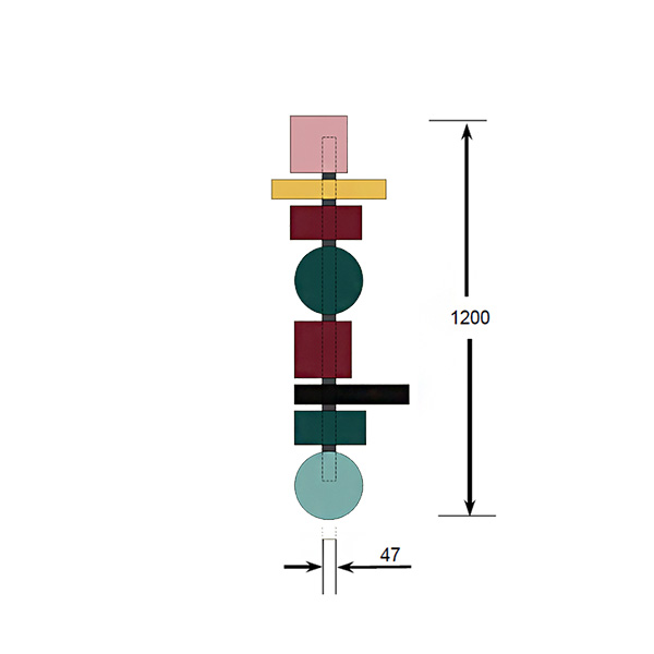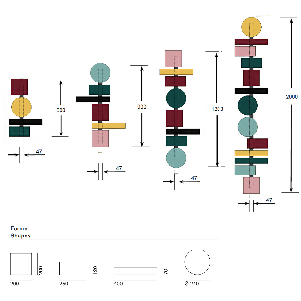 TOTEM 60: (1x Cuadrado rojo púrpura/1x circulo dorado/1x rectángulo largo negro/1x rectángulo verde petróleo)