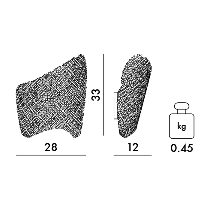 TEA es un signo abstracto, un objeto con una impresión casi artesanal que parece representar dos manos que sostienen la luz en sus palmas, dejándola escapar a través de las tramas irregulares que la definen en un juego de luces y sombras, como las sombras proyectadas en la pared. Es especialmente innovador el tacto irregular y poroso elegido para su acabado extremadamente natural, similar a la terracota y al bizcocho, con una gama cromática básica que resalta cómo, incluso a partir del reciclaje de otros materiales, se pueden crear objetos de gran calidad y poesía. TEA está hecha de termoplástico reciclado y está disponible en los colores blanco, antracita, terracota y tortora.
