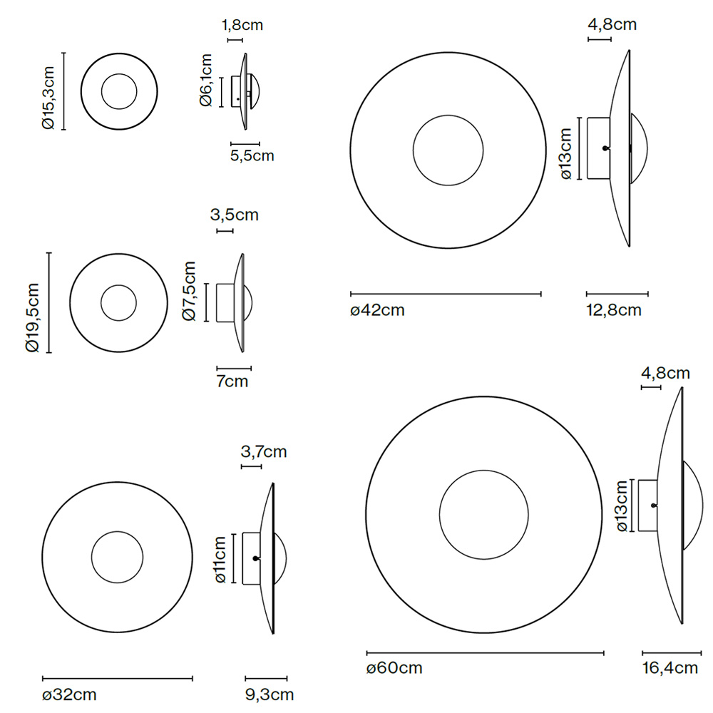 La versión Ginger 15 C es una nueva y pequeña pantalla circular de pared o techo, ideal para iluminar zonas de paso, que proyecta luz únicamente hacia abajo para iluminar el camino y evitar deslumbramientos.