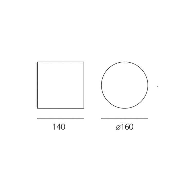 Aplique exterior de pared redondo con 2 haces de luz. Dimensiones: Ø16 cm.