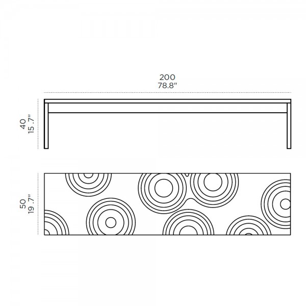 En su versión de exterior es un banco asiento de multicapas de okumé compuesto de diversas capas superpuestas con veteado cruzado.