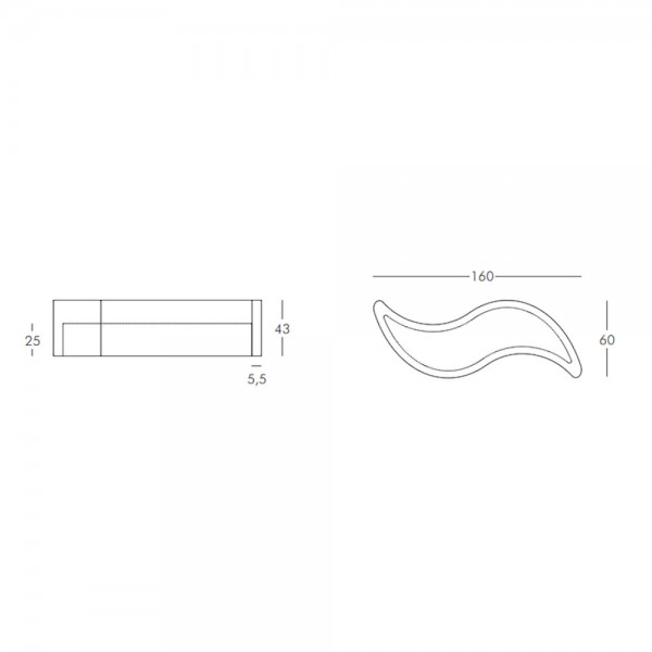 Banco con forma de ola exterior. Dimensiones: 160x60x45h cm.