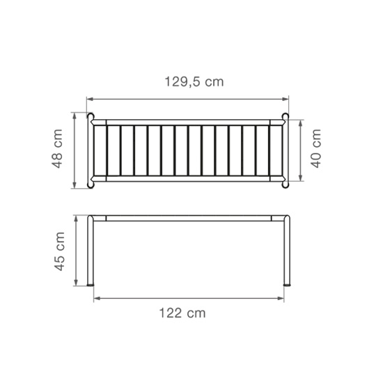 La estructura del banco está formada por tubos de acero con revestimiento en polvo negro, unidos mediante conectores que ofrecen una estabilidad notable y un montaje sin esfuerzo.