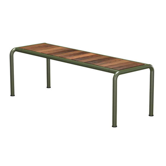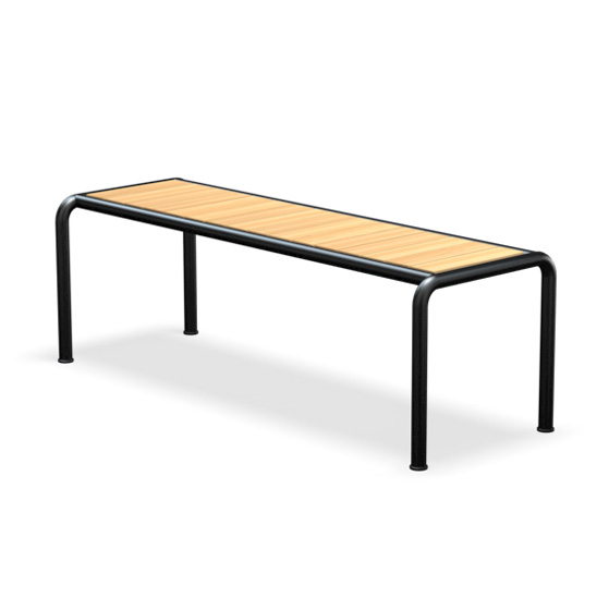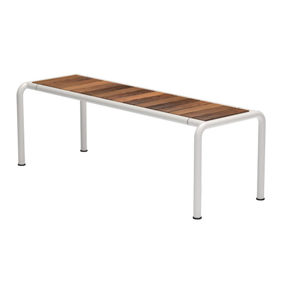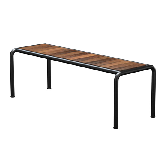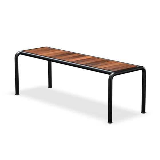 Banco con estructura de acero y asiento de madera. Diseño por Henrik Pedersen.