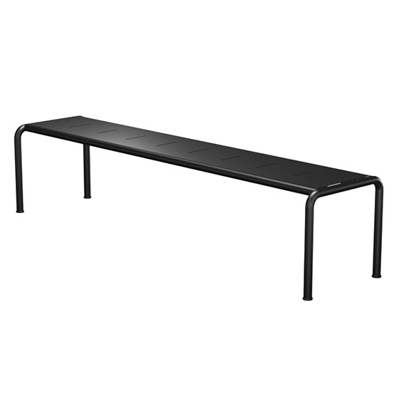 Banco con estructura de acero y asiento de aluminio. Diseño por Henrik Pedersen.