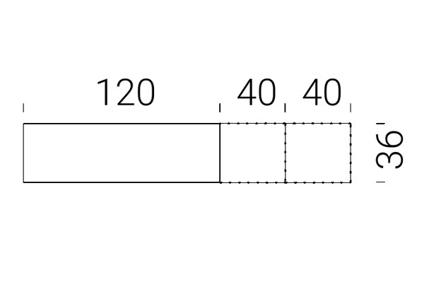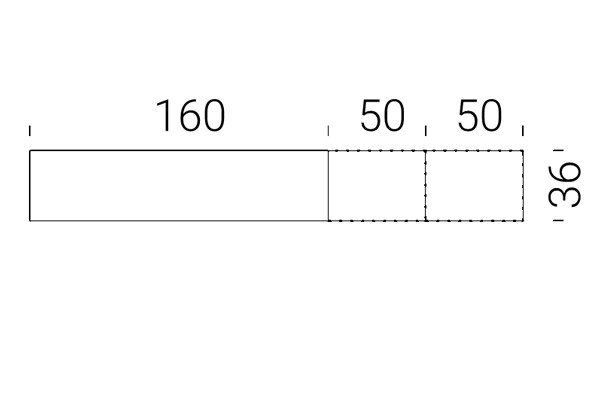 Junto al banco Sintesi, se pueden adquirir entre 1 y 5 cojines de asiento y respaldo en cuero acabado negro. En la siguiente tabla de dimensiones se expecifica el número de asiento de cada banco.