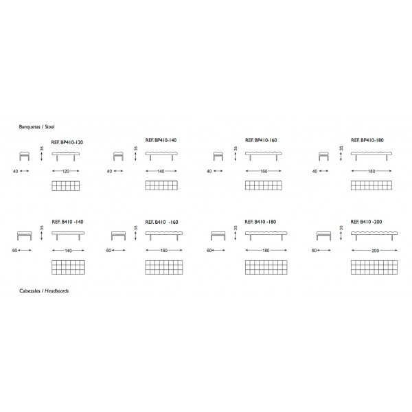 Pies de metal pintados en color aluminio o cromados.