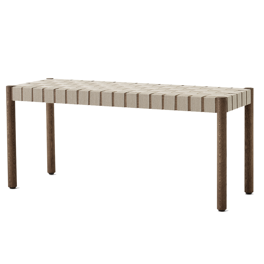 Este banco, que lleva el nombre del teatro Betty Nansen de Copenhague, está fabricado con correas expuestas hechas a mano con fibras de lino naturales. Su estructura de roble macizo está disponible en cuatro colores contemporáneos.