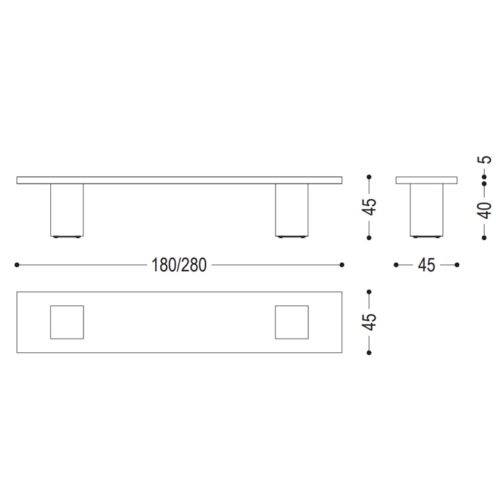 Banco realizado en madera maciza con patas que pasan a través de la superficie.