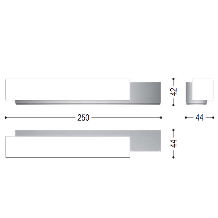 Unión entre un único bloque de madera maciza de cedro perfumado, de sección cuadrada, y una pieza de chapa metálica plegada.