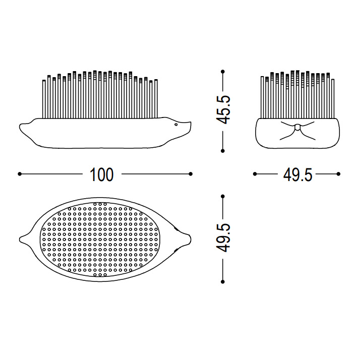 Banco inspirado en un erizo realizado en cedro macizo aromático. Dimensiones: 100x49,5x45,5h cm.