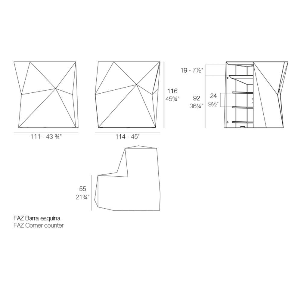Módulo esquinero barra exterior design by Ramón Esteve. Dimensiones: 114x111x116h cm.