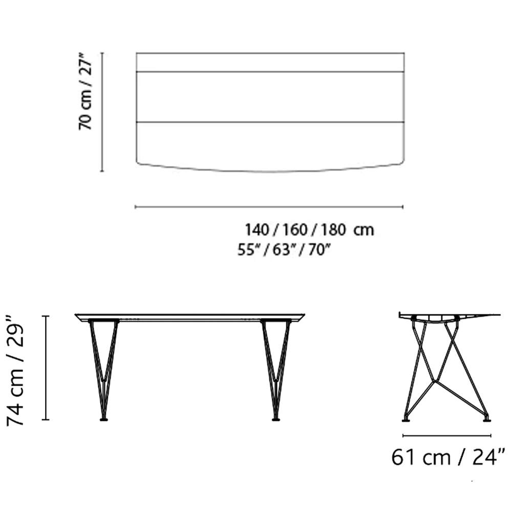 El sobre delgado de aluminio extruido de la Table B se ofrece en longitudes que van desde un metro cuarenta hasta un metro ochenta. Diseñada por Konstantin Grcic, esta mesa destaca por su estética minimalista y su alta funcionalidad.