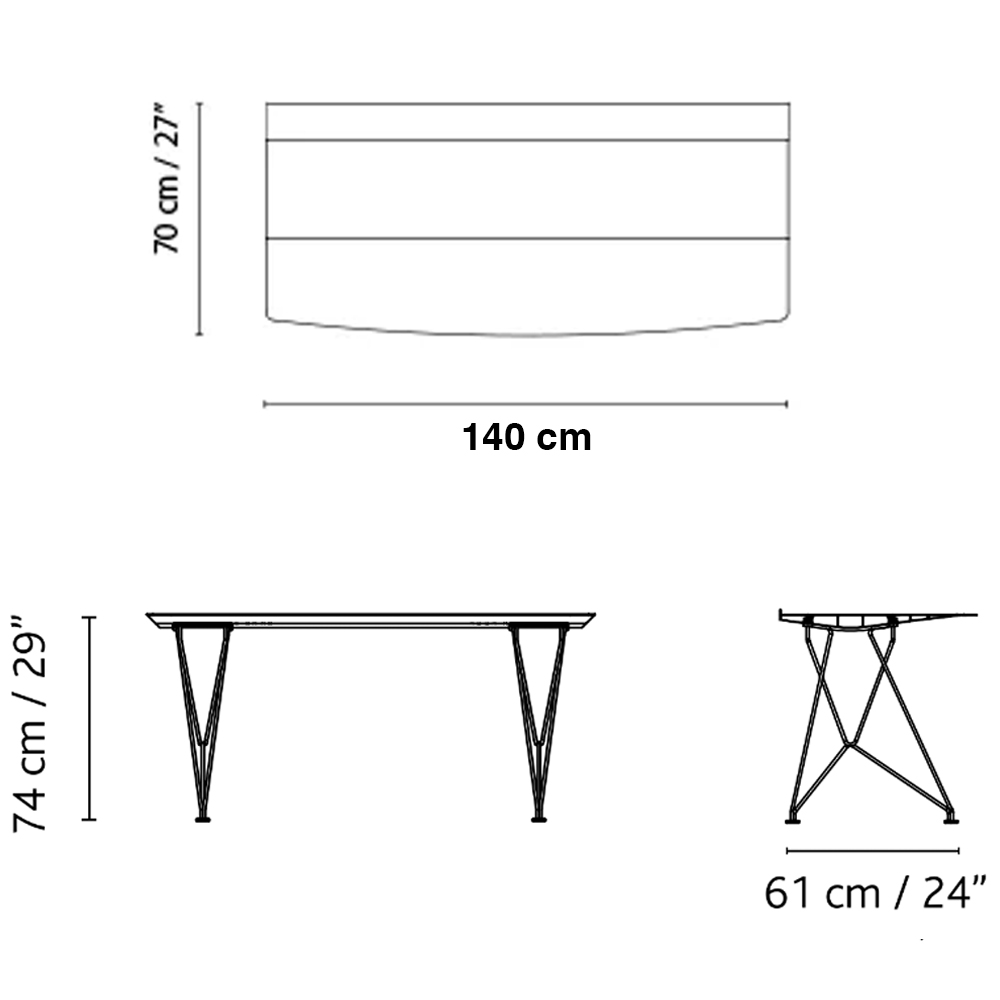 Escritorio Table B Acero Inoxidable, un ícono de BD que ha recibido el prestigioso premio Red Dot Best of the Best en 2011. Esta mesa versátil es perfecta para interiores y exteriores, y ahora está disponible en una versión de escritorio de 70 cm con patas de varilla de acero inoxidable.