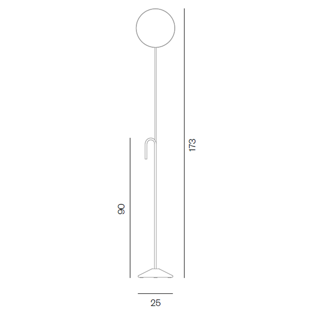 Espejo alto con varilla de acero fijada a una base. Dimensiones: Ø25x173h cm.