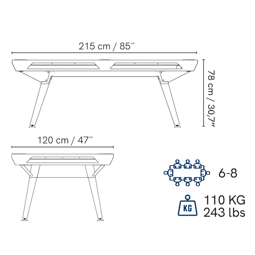• Materiales: Estructura de acero, pizarra HPL, pies de madera Moabi.