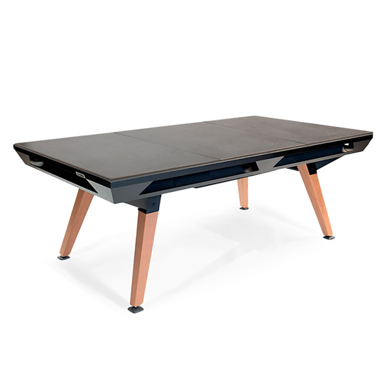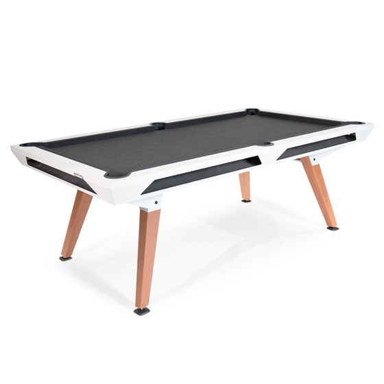 Disponible en blanco o negro, la mesa de billar Origin puede convertirse en una mesa de exterior con la ayuda de paneles opcionales.