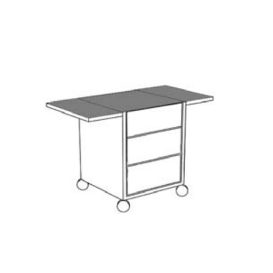 Detalles finos y espacio de almacenamiento funcional caracterizan este pedestal móvil.