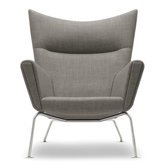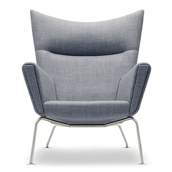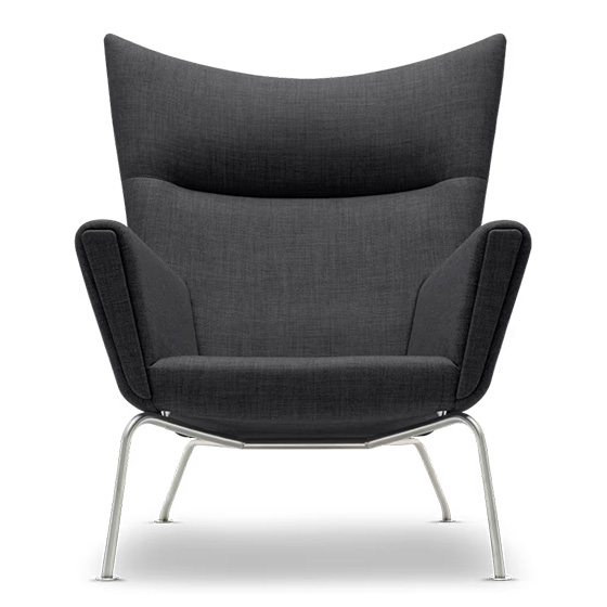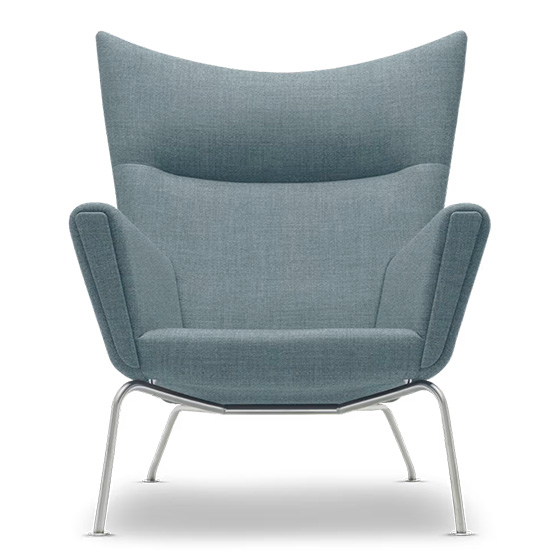 La butaca Wing CH445 de Hans J. Wegner, tiene un asiento tapizado en su totalidad que descansa sobre una estructura hecha en acero inoxidable. Esta moderna buataca, se destaca por sus líneas distintivas y comodidad al sentarse.