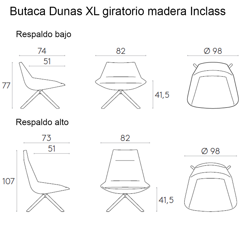 Butaca Dunas XL giratorio madera Inclass. Diseño tapizado ideal para salón.