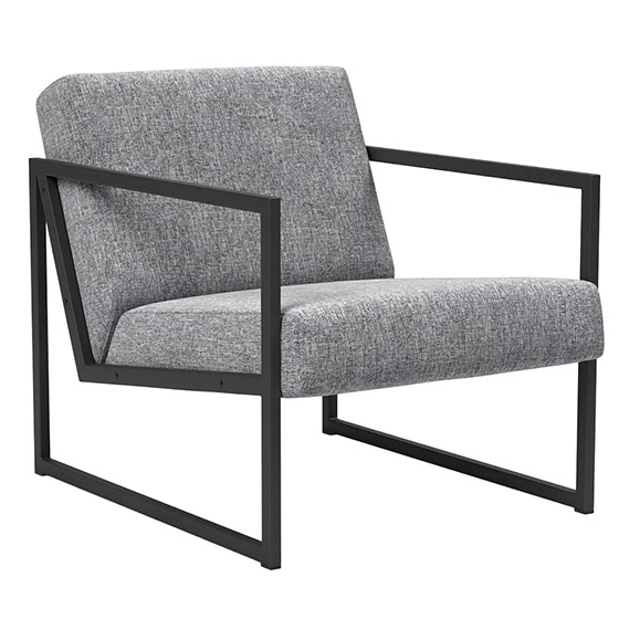 Butaca con reposabrazos tapizada con patas de acero negro. Dimensiones: 61x81x69h cm.