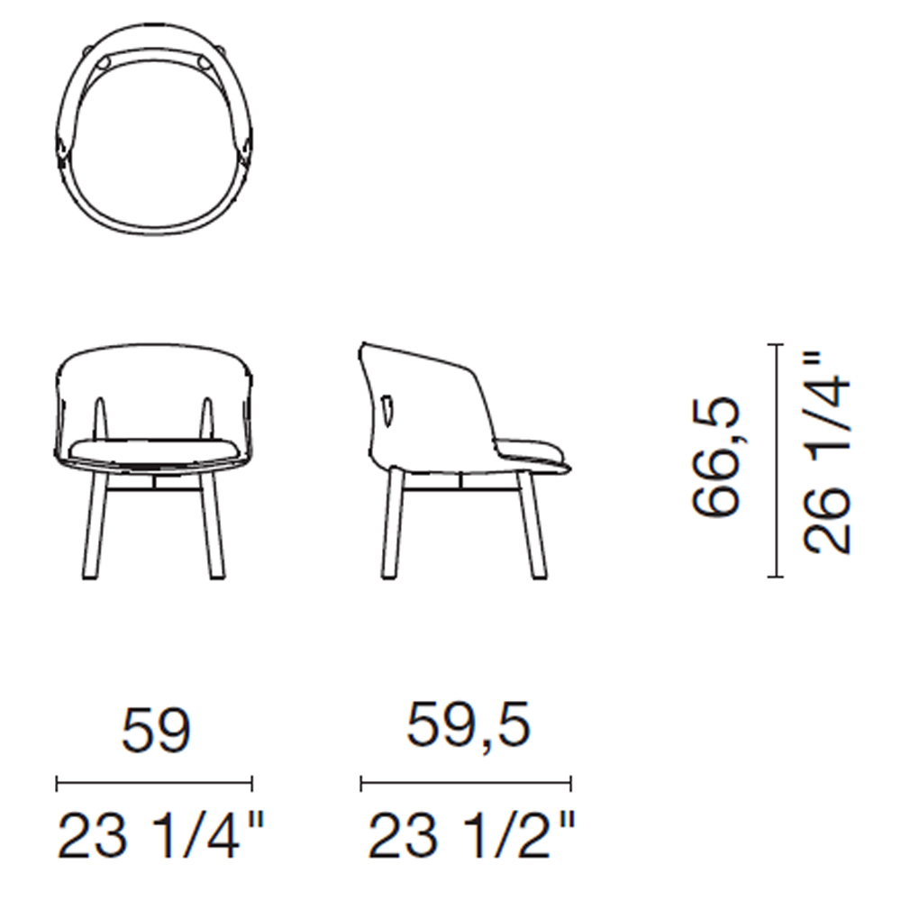 Inspirada en los autos urbanos que circulan casualmente por las calles de Milán, como el famoso Fiat 500, la butaca Peg tiene una forma baja y redondeada, descansando sobre patas de madera de fresno macizo con un acabado decapado, teñido de roble, teñido de wengé o teñido de negro. Las patas perforan ambos lados del respaldo: gracias a este detalle, el estudio Nendo proporciona un soporte adecuado para la espalda y una comodidad ideal para cualquiera que se siente en este pequeño sillón.