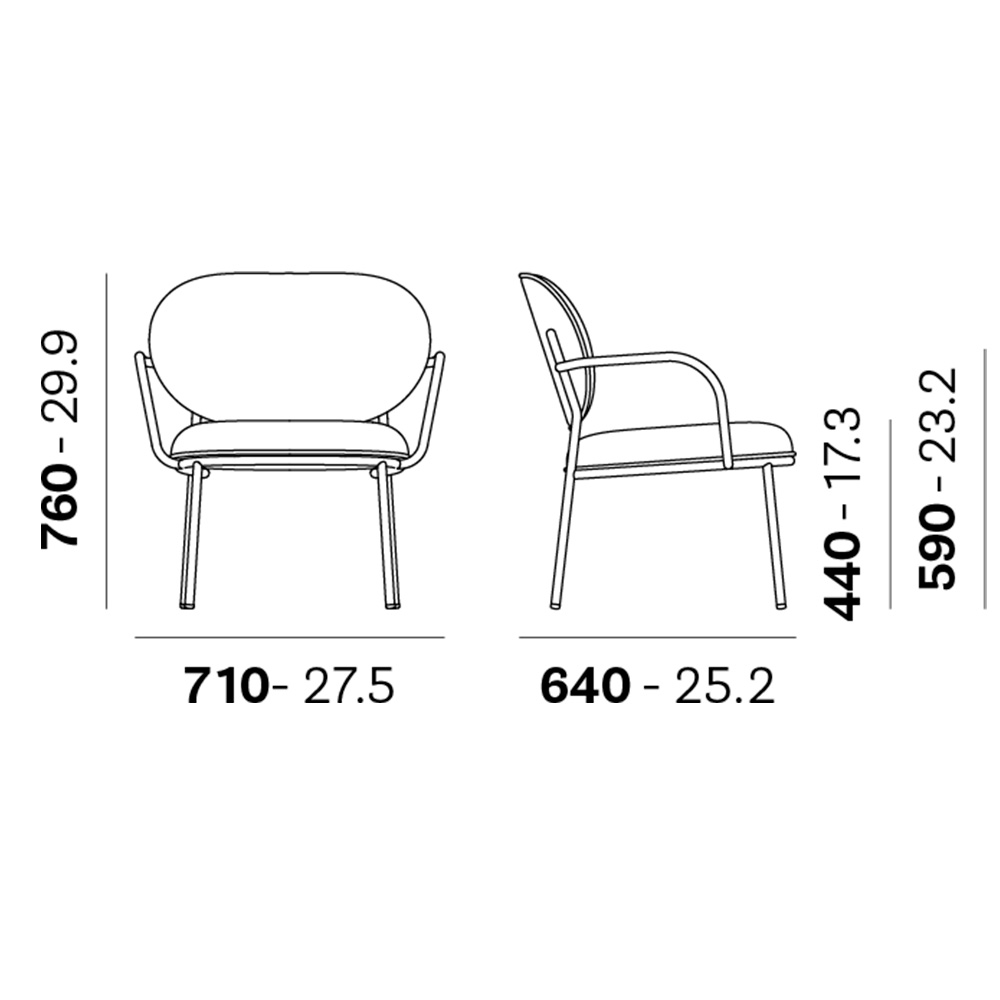 Butaca tapizada con estructura en tubo de acero. Dimensiones: 71x64x76h cm.