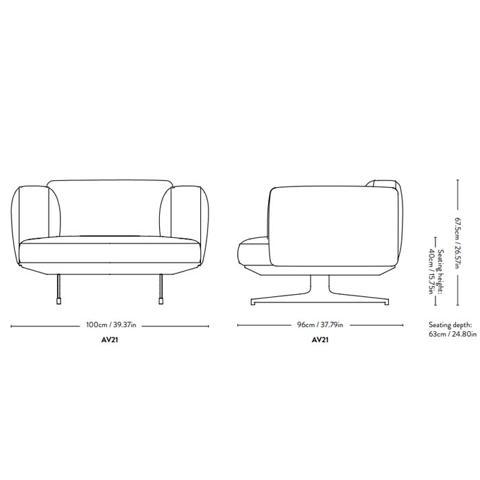 La estructura está hecha de elementos de madera y posteriormente recubierta de espuma HR, edredones y guata de poliéster. Las patas de metal son de recubierto de polvo.