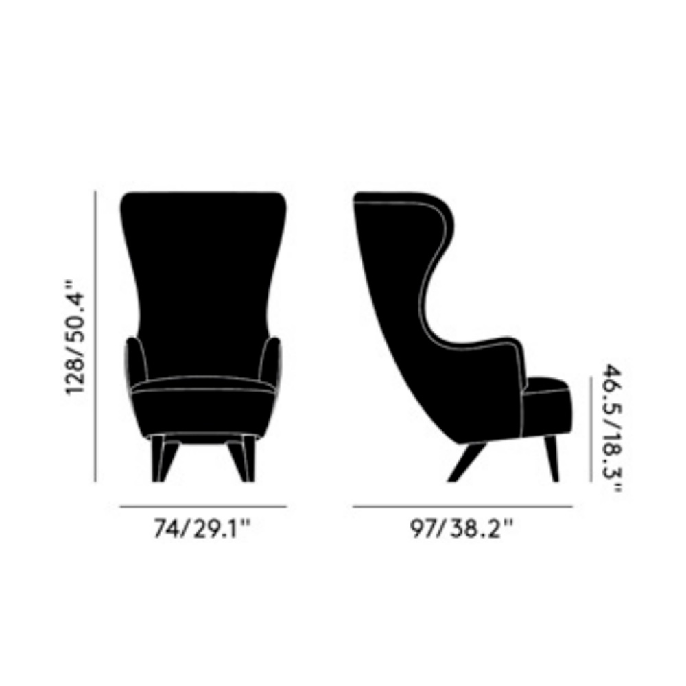 Butaca tapizada con estructura de roble negro. Dimensiones: 74x97x128h cm