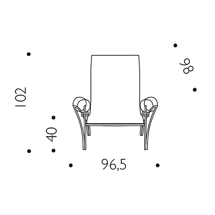 Butaca con estructura de chapa perforada. Dimensiones: 96,5x98x102h cm.