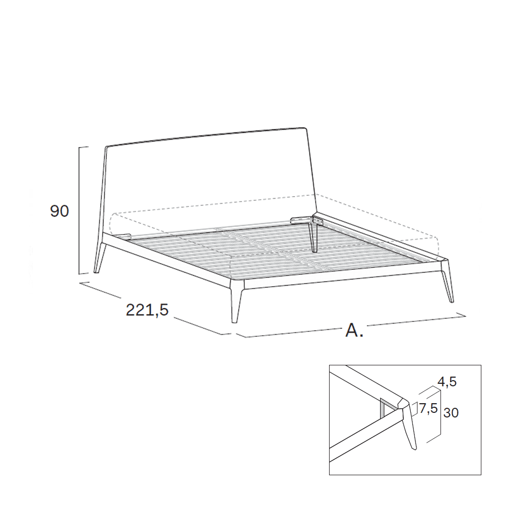 Cama elegante con aro acabado en madera de roble y cabecera en madera maciza
