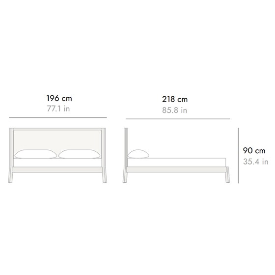 Cama matrimonio de madera de roble macizo y cabezal de MDF o tapizado.