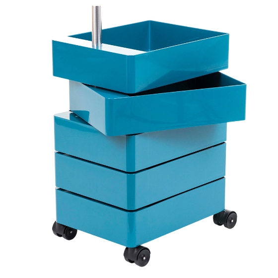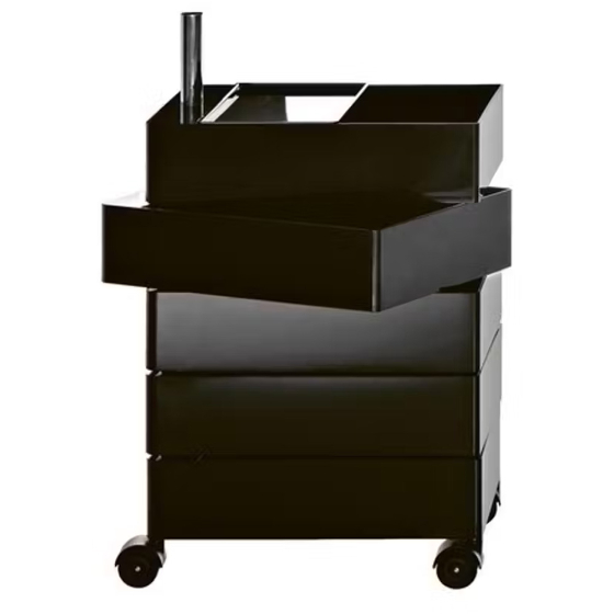 Carrito contenedor de ABS brillante con cajones y ruedas. Diseño Konstantin Grcic.