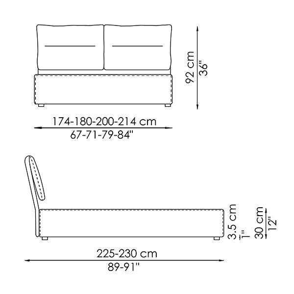 Una cama para vivir y apreciar por su valor de sastrería: Campo está realizada en tela o piel ecológica y está decorada en los bordes con preciosas costuras de festón, que se pueden elegir tono y es completamente desenfundable.