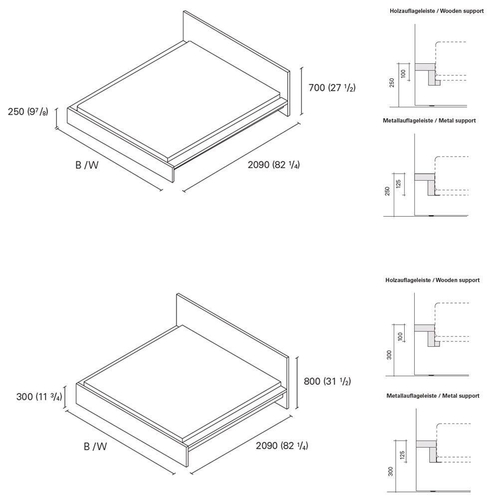 La cama de madera maciza Mo es un diseño e15 original e icónico, representando la estética de diseño distintiva y duradera de e15.